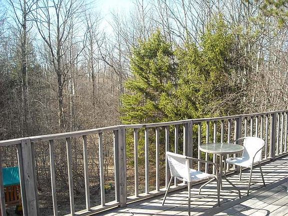 Four Bedroom 2 Bath home on a nice wooded location at Sugar Springs. Open Kitchen/dining & living room with brick wall fire place & door walls out to the wrap around deck, Lower level Walk out with Family room facing the Wooded commons. New Stove with microwave. Enjoy all Sugar Springs has to offer, 2 golf courses,pro shop,2 lakes with great fishing, restaurant & Pub, new indoor heated pool, exercise room with new equipment, sledding hill, Chalet to rent, nature trails, activity center, boccie ball, grass air strip and more. ONLY 2 1/2 hours north of Detroit!