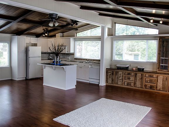 3244 66th Ave. SW, #61, Tumwater. Classy looking manufactured home in a quiet, 55+ country park with a 27'X27' great room, lots of built-ins for convenient storage, warm laminate wood floors, wood ceiling and more.