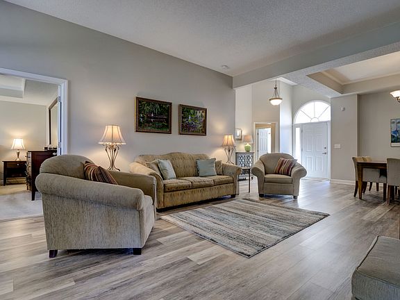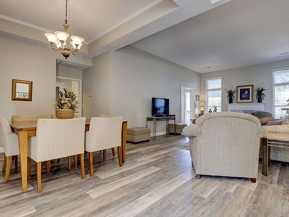 This gorgeous home looks like it has just received a make over on your favorite HGTV show. The entry invites you into a very open and airy floor plan that is bathed in light. The living room features a high ceiling and a gas log fireplace. To the left is a formal dining area, currently doing duty as a music area. The kitchen boasts granite counter tops, top of the line stainless steel appliances, a handsome tile back splash, a spacious pantry and plenty of cabinet space. At one end of the kitchen is a large breakfast nook and at the other end is a separate laundry room, with access to the two car garage. This home has a surprising amount of storage space. Luxury vinyl plank flooring adorns the living, dining and kitchen areas. The spacious master suite features a trey ceiling and opens to a beautiful private bath with double vanities, a walk-in shower, a walk-in closest plus a linen closet. The master bedroom as well as the two guest rooms are carpeted. One of the guest rooms is currently used as a den. You will enjoy relaxing in the 17x10 sunroom with its tiled floor and abundance of light. This beautiful space is in addition to the measured square footage of the home. Step outdoors into onto the patio and your private back yard. The roof was replaced last year and the HVAC is just a few years old. Open space, a top notch renovation, plenty of storage and an affordable price! What more could your ask for? How about a neighborhood pool, playground and tennis courts plus a convenient location close to shopping and the beach. Be sure to look at the 3D virtual tour. HOA dues includes pool, tennis courts , playground plus painting of exterior surfaces, lawn maintenance, including mowing, edging, weed and feed and trash pick up.