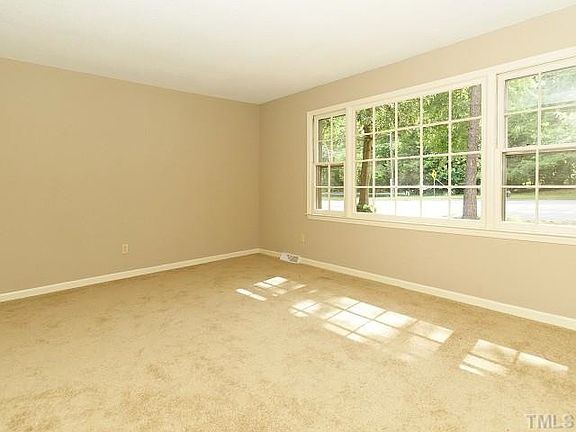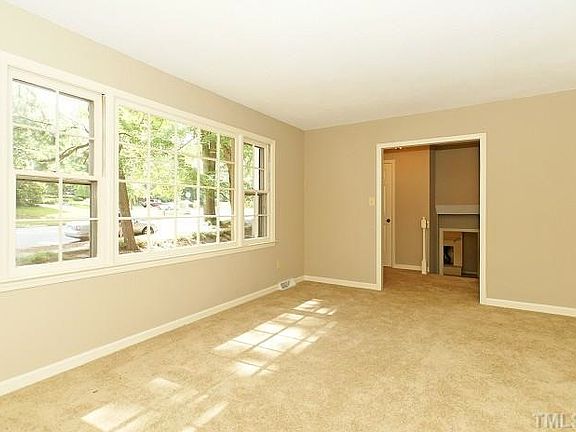 JUST IN TIME FOR SUMMER! Updated carpet, ceiling fans, and lighting. Living room with picture window. Formal dining. Cute eat-in kitchen. Master bedroom with his-and-her closets. Lovely master bath with updated tile flooring and shower. Double-door closets and 1" blinds in all bedrooms. Family room with painted masonry fireplace and two ceiling fans. Ample laundry room. Private fourth bedroom off family room. Totally re-done bath off family room with new vanity, lighting, and shower surround. Gorgeous wooded lot. Two driveways. Great neighborhood--close to North Hills, Crabtree, and a two-minute walk to Shelly Lake! Just Adorable!