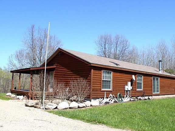 If privacy is what you have been looking for this 3 bed 2 bath home on 60 wooded acres may be it! Built with wood 2x4 exterior walls.The master bedroom with walk-in closet has beautiful master bath with garden tub and shower. Spacious open floor plan with fireplace and abundance of windows to take in the views. Large kitchen with skylight, pantry, wet bar and snack bar. Main floor laundry, skylights and large bedrooms. 40x64 garage and a 24 x 32 barn for all the toys!! Enjoy the panoramic views from any window in the home was well as the large partial wrap around covered porch. Amazing trails for snowmobiling, quads or dirt bikes. Prime hunting land for trophy bucks, turkey and abundance of wildlife. For the fisherman there are many lakes and rivers close by.