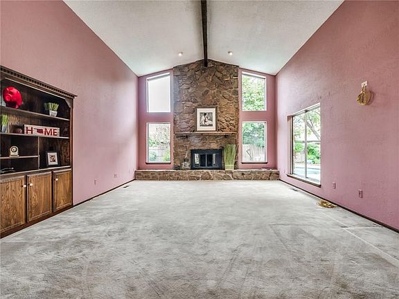 A modern well maintained home located in a desired area of OKC! Enter to find high vaulted ceilings, wood beams & large windows allowing lots of natural light. The spacious living room has a built in book case, entertainment center & a large rock fireplace surrounded by windows. The windows allow for great views of your outside swimming pool! The kitchen has newer appliances, a breakfast bar & lots of cabinets & counter top space! The master bedroom has a vaulted ceiling, two closets with one being a walk-in & a full bath. Enjoy evenings on your large patio overlooking the pool & landscaped backyard. This home comes with a sprinkler system, gutters, inside utility room, alarm system, fenced backyard & a garage door opener! The washer & dryer can stay or go. Located close to Hefner lake, shopping and dining. Easy access to Hefner Parkway.