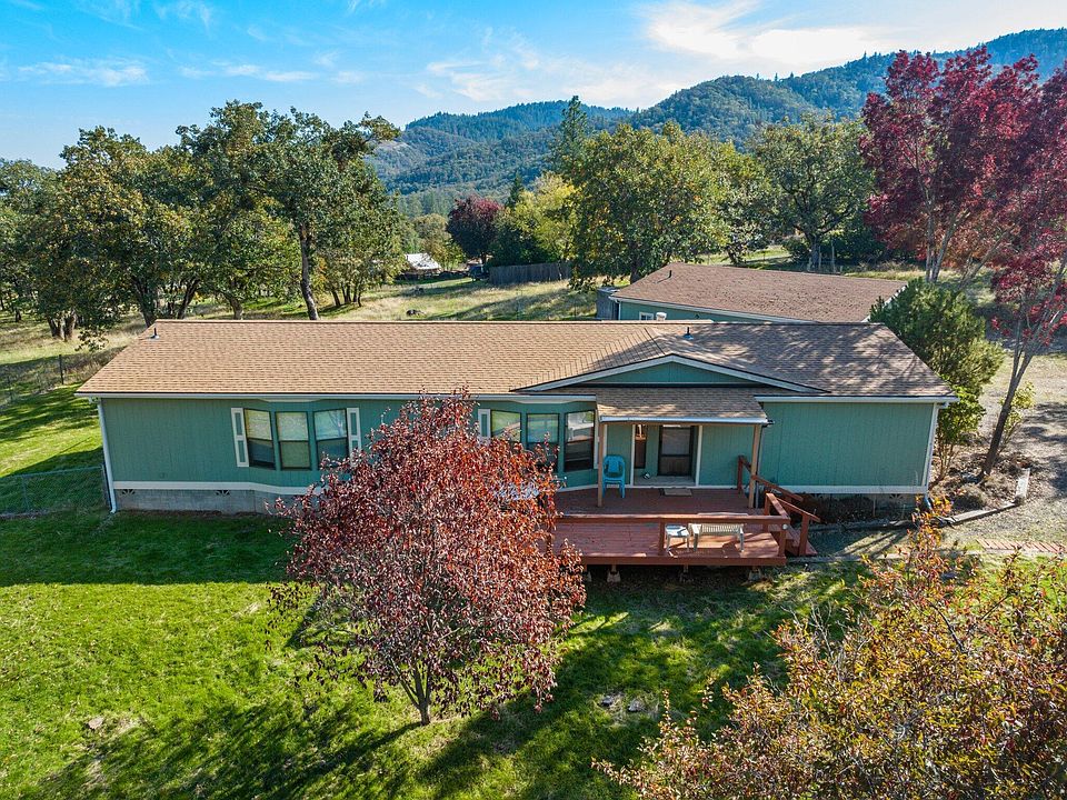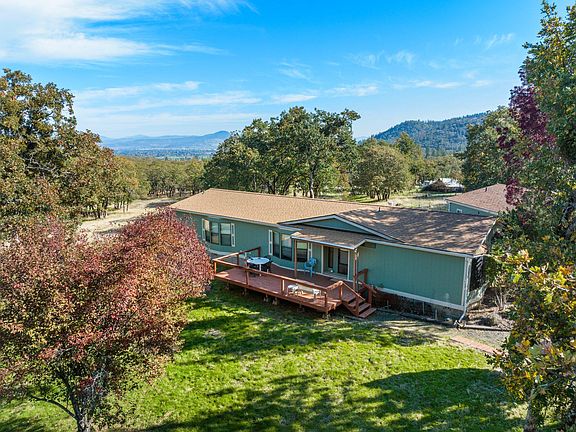 A Gorgeous 4.83-acre Property on the historic Old Stage Road. Nestled among the ponderosa pines and madrone trees with a flat pasture (perfect for horses), this property is a nature lover's dream come true. The manufactured home, built in 1991, features two spacious living areas, a roomy primary bedroom, and two large guest bedrooms. With a new trex decking on the back of the home, you can enjoy stunning views of the valley, while the front offers an excellent vantage point to watch the local wildlife. The oversized garage includes a full bath and extra storage space. This is a perfect opportunity to update the current manufactured home or build your dream house amongst the views of the Table Rocks and McLoughlin.