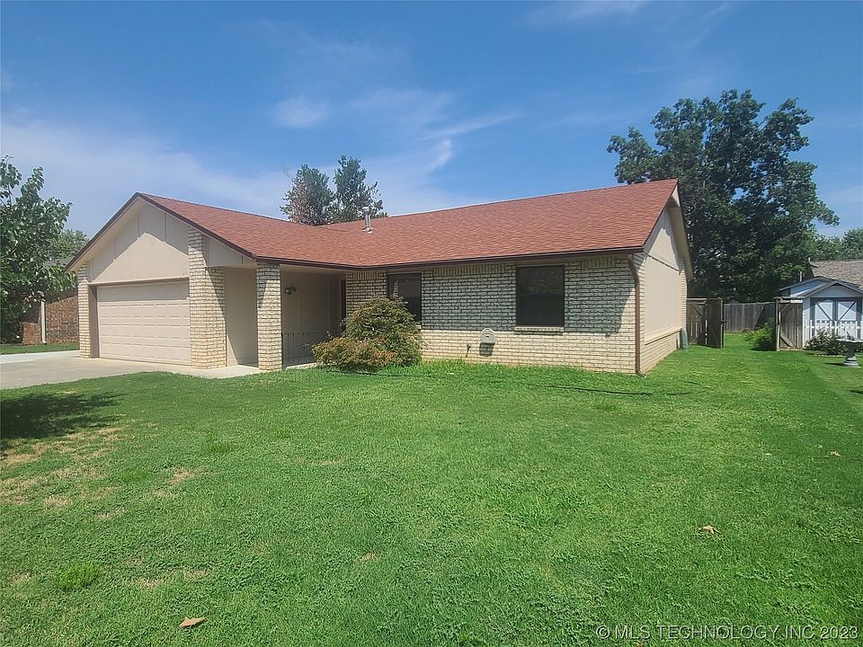 Immaculately maintained home sitting just off the Creek Turnpike entrance/ exits close to WalMart, Warren Theater and other retail / restaraunts that's move-in ready and just waiting for you! This 3 bed 2 bath home featuress newer flooring throughout, updated bathrooms with newer toilets & vanities /counters, storage shed, above ground pool and extra concrete for guest parking. Most Ceiling fans and fixtures throughout the house are updated. The wood burning firepace creates a cozy environment in the living space that is semi-open to the dining/ kitchen. Kitchen features newer cabinets and counters with gas stove, newer Dishwasher and bamboo flooring. The Utility space for washer and dryer appliances is just inside as you pass from the garage to the kitchen. Storage shed and above ground pool to stay. Home is in normal working order so seller will only do lender/ appraisal required repairs.
