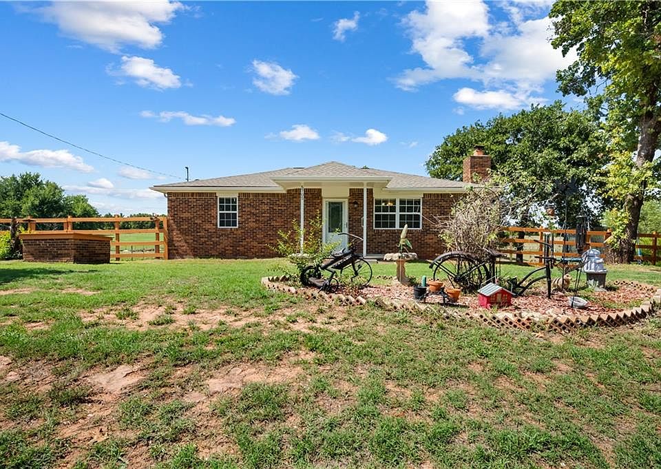 ADORABLE HOME on over 3 acres! 3 bed, 1 1/2 bath brick home within walking distance of Guthrie Lake! Livestock welcome and has a great horse barn ready for your ponies or a handyman's dream space! House has been remodeled with granite countertops in kitchen, newer appliances, and cabinetry! Great new flooring and freshly painted! The master suite is a loft with a private deck overlooking shared pond and pasture! 1 car attached garage and root cellar! Home also has detached 2 car carport, storage building and fenced in area for goats. This is a great house! Well Water so no water bill!