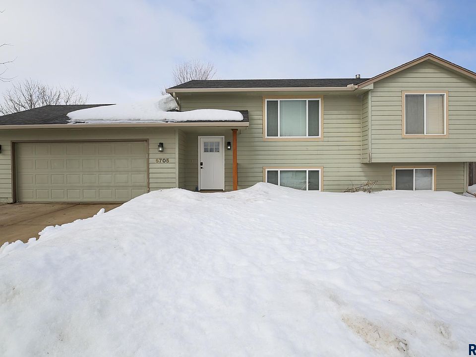 Charming 3-bedroom 2 bathroom split foyer home in the fabulous Southwest Sioux Falls neighborhood. Awesome kitchen with an abundance of cabinets, great counter space, vaulted ceilings that opens to the roomy dining area with sliders to the large newer deck with a fun slide to the backyard. Welcoming, sun-filled living room with new large picture window and soaring vaulted ceiling. The main level also hosts two bedrooms, including the spacious primary bedroom and full bathroom. The generous lower level hosts a cozy family room fireplace, large entertaining area, plus a third bedroom and a bathroom. Some updates include: new front door, 2 new windows, fresh interior paint throughout the home, new roof and gutter (before closing), can lights in the lower level and duct cleaning recently done. Come see for yourself!