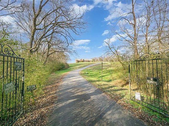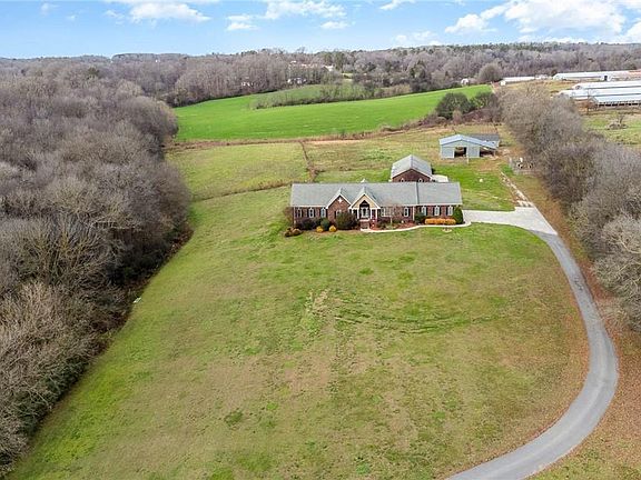 It is over 3,000 sqft with 11.8 acres of peaceful country land with amazing views with trees and privacy. All brick home, 3 bedrooms and a f.r.o.g.. The gourmet kitchen has an oversized island with granite countertops, double oven, and stainless steel appliances. The laundry room is off of the master bedroom with a door leading to a porch and pool. There is a hot tub near the pool (waterproof deck near pool). There are second living quarters that has a full kitchen and bathroom as well as garage space. There is a 5 horse stall (1990 sqft) and a 4 dog kennel (600sqft). Tranquility at its finest.