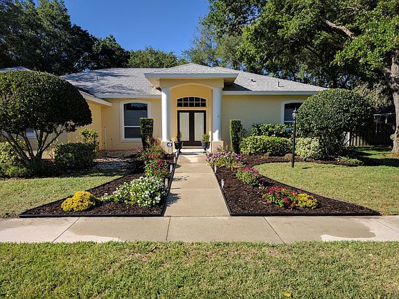 Enjoy the Florida lifestyle in this beautifully landscaped pool home. Entering the home through the foyer, there are formal dining and living rooms of ample size. The master bedroom suite spans the depth of the house, with its personal slider to the pool area at the rear. The master bath features a shower and separate garden tub. The kitchen is accessed not only from the house but also from the garage, through the laundry room. The dimensions and layout of the kitchen are very congenial. In addition, it overlooks the family room and has an adjacent breakfast nook. The two secondary bedrooms and bathroom are accessed from the family room. To the rear of the house is a lovely pool with large lanai area. The expansive backyard is fully fenced and landscaped.