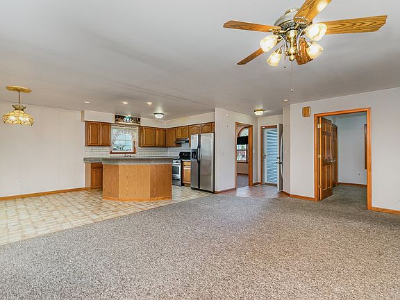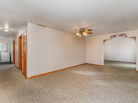 Lots of curb appeal for this well maintained 4 bedroom, 1-3/4 bath ranch with accessibility features! Enter the home with ceramic foyer to huge open concept living room and kitchen/dining area which leads to additional rec room with corner fireplace and sliding doors to deck and brick patio with gas grill! 2 bedrooms are off the living area which could also be used as den/office areas and the other 2 on the other side of the home - one with bath with walk-in shower. Laundry area includes laundry tub, washer and dryer included. Kitchen has lots of cabinets and large island and includes stove, fridge and disposal. Roof and siding were replaced in 2014 and the home has a whole house Generac generator. Extra wide doors & hallways. 2 car heated garage has a ramp for access into the home. Don't miss out on this opportunity - this home will not last long!!