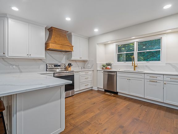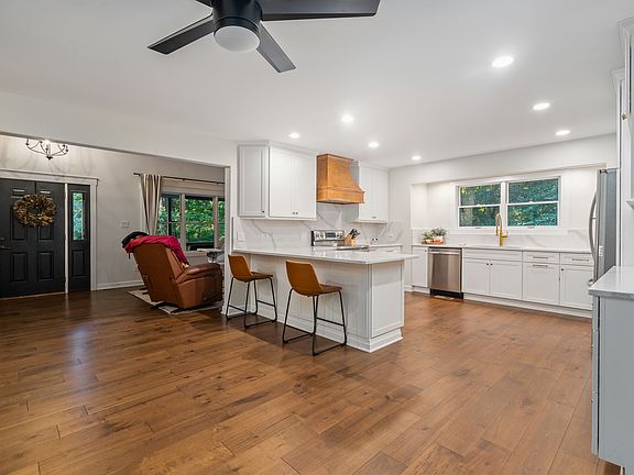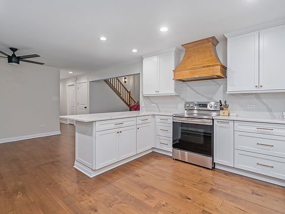 Tucked away on nearly an acre of private, heavily wooded land and bordered by a serene forest preserve, this completely remodeled custom home is the perfect blend of elegance, comfort, and tranquility. A charming covered front porch welcomes you inside, where you'll be captivated by the soaring vaulted living room showcasing a dramatic floor-to-ceiling stone fireplace with a custom wood-burning stove insert. The brand-new chef's kitchen is a showstopper, featuring 42" white cabinetry with crown molding, gleaming white quartz counters and backsplash, soft-close cabinets, dual pantries, and high-end stainless steel appliances. The adjoining dining area offers direct access to a covered back deck overlooking the expansive, tree-lined yard with storage shed-an ideal setting for outdoor gatherings or peaceful mornings with nature as your backdrop. Perfect for related living, the main level includes a bedroom with stylish shiplap accents and a full bath, along with the convenience of a main level laundry room. Upstairs, a vaulted loft/family room overlooks the living space below, adding versatility for entertaining or relaxing. The luxurious master suite is a true retreat with an oversized, spa-inspired shower adorned with custom tile. A tandem third bedroom through the master makes an excellent nursery, office, or private sitting room. The oversized 3-car garage provides ample space for vehicles and storage, while peace of mind comes from extensive recent updates: new roof, fascia, soffit, and gutters (2022), furnace (2021), well pump (2020), water softener (2020), and water heater (2018). This home is a rare find-offering the serenity of a secluded forest setting with the style and modern updates today's buyers dream of.