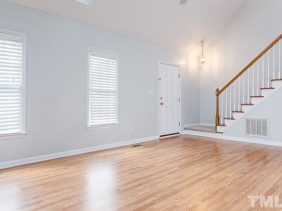 VOLUME CEILINGS -- LIGHT, BRIGHT, OPEN & AIRY! * Dramatic vaulted LR with wood-burning fireplace * Main floor master with 2nd story window * Master bath with garden tub & separate tile shower * User friendly kitchen with stainless appliances * Jack & Jill bath up * ALL NEW IN 2019 - roof, interior paint, carpet, wood-look laminate floors * Lush corner lot * 10x12 Deck overlooking fenced yard * Community amenities - pool, trails, playground * Low HOA fee * Convenient SW Durham location mins to RTP!