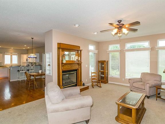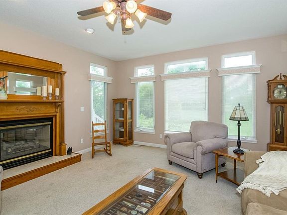 Great Hunters Ridge ranch located next to the #4 tee. Very nice layout with a large master suite, spacious great room with a 2 sided gas fireplace, lots of large windows with transoms that allow for lots of extra light. Efficient kitchen area with a granite breakfast bar, a walk in pantry and a cozy sunroom with tile floors and access to the deck and yard. The lower level has 2 additional bedrooms, a full bath, family room area, lots of additional storage and direct access to the garage. The large 3 stall has hot/cold water, floor drain and is heated. Possession is very flexible. This is a great opportunity to own a well constructed home at Hunters Ridge Golf Course at an affordable price.