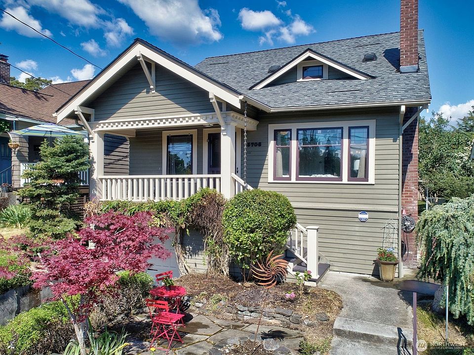 Ravenna Craftsman with rocking chair porch sits proudly above the street overlooking this vibrant neighborhood. Entry level features generous Living with Batchelder tile fireplace, Dining, Kitchen with SS appliances & slab counters, two Beds & renewed Bath. Primary Suite with full Bath, dressing area, & walk-in-closet occupies entirety of upstairs while lower-level offers non-conforming bed & laundry, + large open spaces to inspire! Fully permitted renovations kept period details alive, with addition of air, new electrical, earthquake retrofit, new doors & millwork, & more. Great schools nearby, and unbelievable location for shopping, dining, education, recreation, and commute. Blocks to UW, U Village, acres of nature, and Lake Washington!