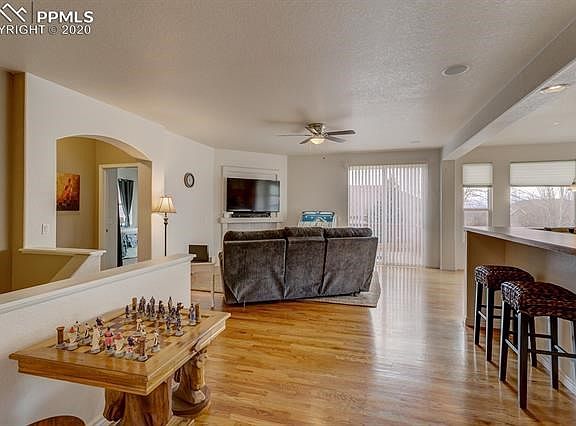 Welcome home! This home is move in ready, corner lot and won't last long. Close to Ken Jordan Park, beautiful open floor plan ranch-style home. Enjoy cooking in a big kitchen on Samsung Flex Duo smooth surface-Element 2.7 cu ft/3 cu self cleaning and double oven true convection stainless steal electric range. Big dining room and family room with stunning Pikes Peak views from dining area, walk out to the deck for more views.