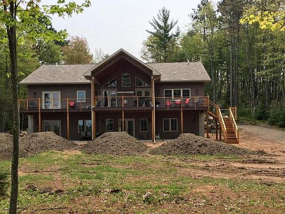 Cruise the Chain for miles and miles. Stop for a cold one and lunch at one of the waterfront pubs. Take a refreshing dip at the sand bar. Then return home to this newer custom built home located on the Rhinelander Chain just minutes from Rhinelander. The main floor features 3 bedrooms, 2.5 baths, open concept living room/kitchen, and laundry room. Amazing big water views from living room and master suite. Quality touches include hickory cabinets, hardwood flooring, cathedral ceiling, gas fireplace, stainless steel appliances, and an abundance of windows. There is a two car attached garage, blacktop drive and beautiful landscaping. The lower level walkout is waiting for your finishing touches and includes an loads of large custom windows. The setting is private with 173' of frontage and 1.97 acres. Adjoining waterfront lot is also available. 9810