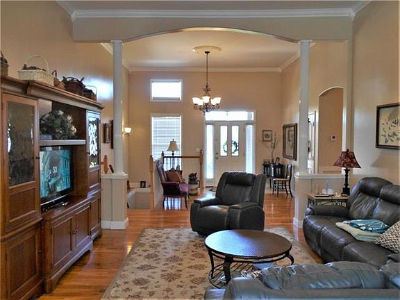 Comfortably elegant & lovingly maintained one-level home in pristine condition! Nearly 2,500 htd sq ft + plenty of room to grow in the full, unf bsmt w/ studded walls & plumbing for bath. Gorgeous stone front porch opens to expansive foyer w/ 12' ceiling & crown moldings. Open concept floor plan w/ 9' ceilings & multiple arched doorways. Airy kitchen features beautiful maple cabinets, granite countertops, stainless appliances, convenient 3-seat island bar & handy pantry. You'll love the semi-formal DR, versatile enough for quick meals or holiday feasts. LR flows to Sunroom & a 2nd, more casual dining area, creating a spacious area for family fun & relaxation. The 12' x 23' deck is accessed here & overlooks private backyard. Lg Master suite w/ WIC. Telecommute? This designated (not retrofit) home office is ideal. Convenient laundry room/half bath. Central vac, heat pump new in 2018. And, just in time for summer--sparkling 16' x 32' pool. This beautiful home is move-in ready!