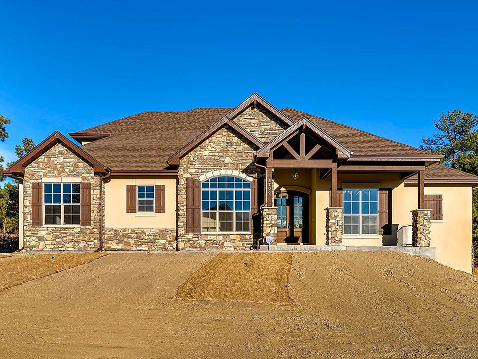 RANCH STYLE, NEW CONSTRUCTION IN THE TIMBERS! Enjoy 1 level living in this elegantly appointed custom residence! The main floor features *A grand owner's retreat with spa-like bath, access to the covered back deck, as well as direct access to the main level laundry room *Main floor guest suite with walk-in closet and dedicated 3/4 bath *2 additional guest baths--one that features a unique 2 person dry sauna! *Soaring great room with floor to ceiling stone fireplace *Large/open kitchen with quality appliance package, walk-in pantry and a breakfast, lunch AND dinner bar! *Butler pantry leading to formal dining room with mtn. views! *Executive study with custom built-ins and mtn. views! *Upstairs, find a versatile bonus room/bedroom/MIL suite/teenager suite with it's own private entrance! *Private, 1/2 ACRE site backs to permanent open space. Tasteful and neutral finishes adorn this BRAND NEW residence.