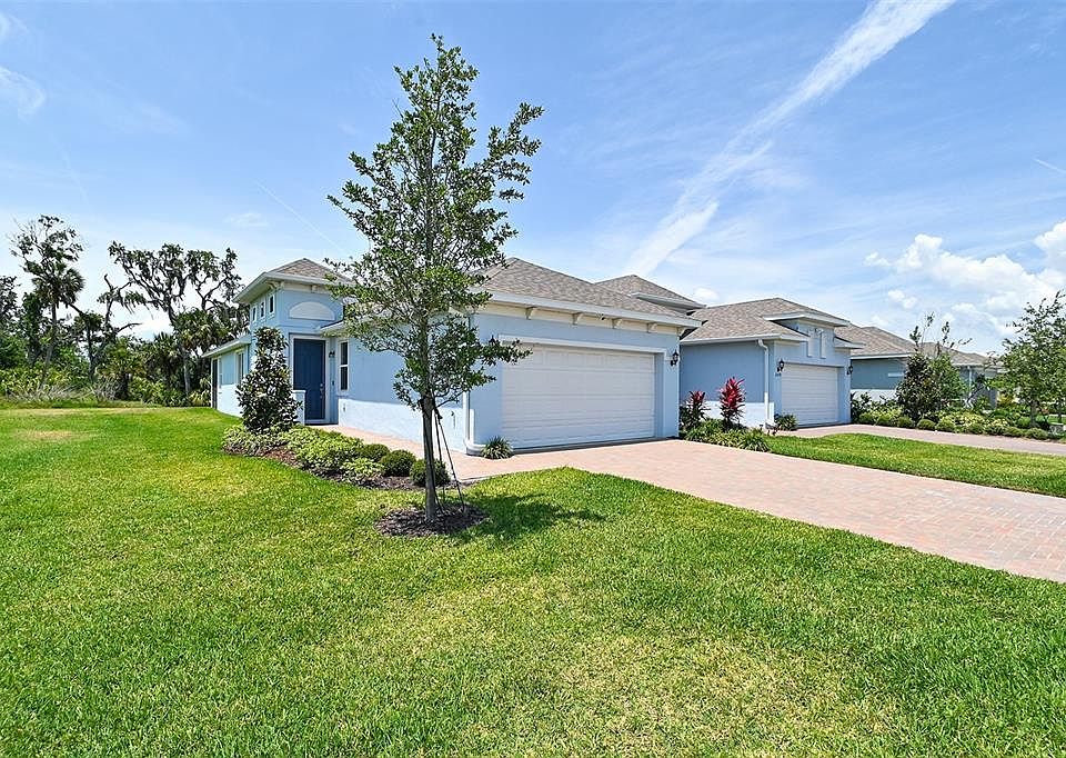 Same exceptional value at a great new price! Your unique opportunity to enjoy the Florida resort lifestyle that is Trevesta. This two-years new paired villa on an oversized corner lot is just the ticket. Tastefully adorned in white and soft grey hues that today's discerning buyers are looking for, the villa offers an open floor plan, three bedrooms (split plan), two full baths, a screened lanai, two car garage, and an indoor utility room. Shows like a model! The spacious island kitchen has 42" solid wood cabinets, stainless steel appliances, and quartz countertops. The master suite is enhanced by a stylish tile shower and large walk in closet. Splashed in natural light, the villa backs up to a beautiful conservation area. Low HOA fees include cable, internet and lawn care. Best of all, it's fee simple ownership and not a condominium, so you own the property. Kick back and relax! Trevesta offers top-notch community amenities such as a clubhouse, fitness center, resort style pool and more. Conveniently located off I-75, Trevesta is but a half hour to St Pete and Sarasota, and a quick trip south to all of Bradenton's fine riverfront restaurants. Schedule your showing today with confidence- you are going to love it! ******Assumable VA mortgage at 2.5%*****