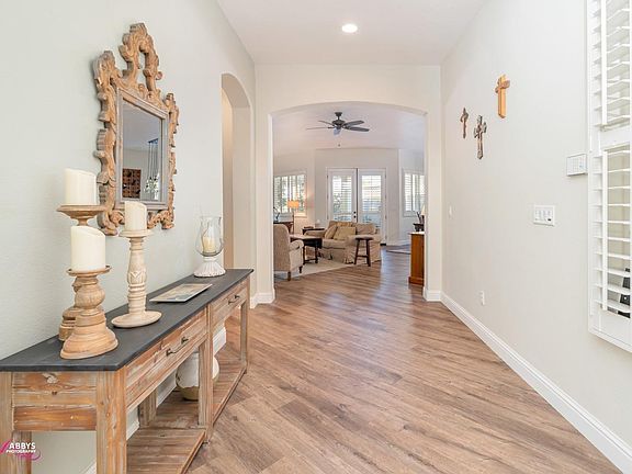 Solera at Kern Canyon a gated 55+ community with resort-style living at its best. This popular Willow floorplan features split wing 2bedroom plus office/den and 2.5 baths. Luxury vinyl flooring throughout except carpet in bedrooms; plantation shutters and fans throughout. Great room with fireplace and built-in cabinets is open to dining area with double doors to covered patio and kitchen with island/bar, lots of cabinets & pantry. Primary bedroom & bath w/soaking tub, large shower and custom walk-in closet with shelving. Laundry with sink, pantry & storage cabinet. Covered patio has width of house patio cover extension, artificial turf in backyard for easy maintenance. Custom front and back security doors. 2 car plus golf cart garage including overhead racks and storage cabinet. Community clubhouse with gym, pool/spa, tennis, pickle ball and bocce ball courts plus lots of interest clubs and activities.