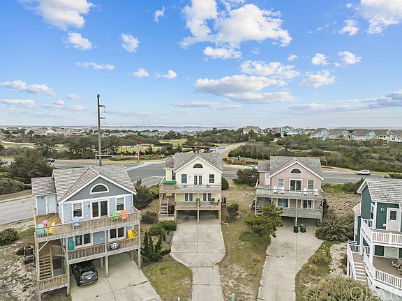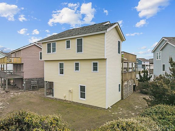 With the location and proximity to a beach access with a bath house, this property presents an exceptional investment opportunity or the perfect retreat for a second home. Its prime location offers unparalleled value and convenience, situated just moments away from the beach, the Village Beach Club, Nags Head Golf Links, and a plethora of area attractions and shopping destinations. Designed with an open floorplan, this 5-bedroom, 3.5-bathroom home is thoughtfully crafted to accommodate modern living. The spacious kitchen, complete with an inviting eat-on bar, seamlessly transitions into the combined living room and dining area, providing an ideal space for gatherings and relaxation. The upper level boasts a large primary bedroom featuring an ensuite bath. Three additional guest rooms on the mid-level, along with a full bathroom and utility room. Furthermore, a bedroom and bathroom on the lower level provide versatility and additional living options. Enjoy ocean views and coastal breezes from the bi-level decks, perfect for entertaining or unwinding in the comfort of a hot tub. Inside, the cathedral ceiling adds to the sense of spaciousness and grandeur. In essence, this turn-key property embodies the epitome of coastal living, offering luxury, comfort, and convenience in one of Nags Head's most sought-after locations.