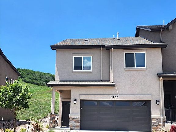 Step into your own private retreat in the heart of Mountain Shadows. This rare end-unit townhome offers the perfect blend of modern style, serene views, and hassle-free, low-maintenance living—ideal for those seeking both comfort and convenience. With 3 spacious bedrooms, 1 full bath, 1 three-quarter bath, and 1 half bath, the home is thoughtfully designed for privacy, relaxation, and everyday elegance. As you enter, you're welcomed by 9-foot ceilings and a sun-filled, open layout. A dramatic staircase creates a striking architectural focal point while connecting both levels with natural light. The gourmet kitchen boasts Silestone countertops, soft-close cabinetry, a gas range, and a walk-in pantry—perfect for everything from quick meals to weekend entertaining. The adjoining living room features a cozy gas fireplace, while the private patio offers a peaceful space to enjoy your morning coffee or evening sunset. Upstairs, the primary suite is a true retreat with dual walk-in closets, double vanities, and an oversized spa-style shower. A secondary bedroom features a vaulted ceiling for added style and space. The upstairs laundry adds everyday ease, while the finished two-car garage (with over 400 sq. ft. of usable space) offers flexibility for storage, hobbies, or a workshop. Enjoy year-round comfort with central A/C, energy-efficient windows, and a high-efficiency water heater. Hassle-free living is yours—the HOA covers exterior insurance, trash removal, snow removal, and grounds maintenance, giving you more time to enjoy life. Take in sweeping hillside views and watch Colorado’s wildlife right outside your door. Just minutes from Ute Valley Park, Garden of the Gods, and westside shopping and dining, this townhome has it all. Whether you're downsizing, upgrading, or simplifying, this Mountain Shadows gem is the perfect place to call home!