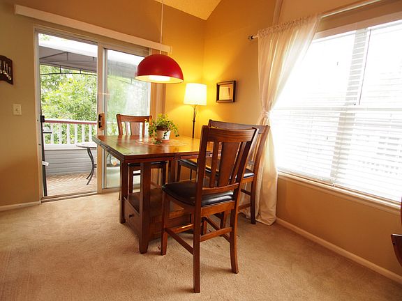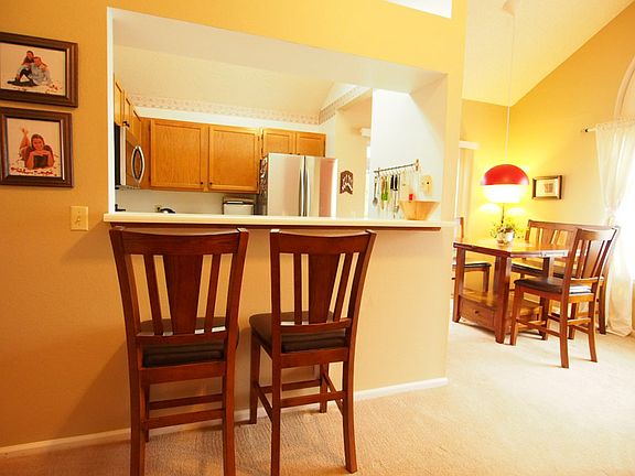 Wow, beautiful contemporary penthouse condo with lots of windows and high ceilings! Meticulous! All new paint, countertops, and newer appliances & carpet throughout. This light and bright condo is peaceful & quiet with no one above or beside you, has 2 bedrooms, jack & jill bath, fireplace, washer & dryer in unit, private balcony with storage unit, 1 car detached garage and 1 reserved parking space. Pool community.