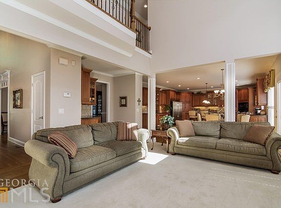 Custom Buford home with 5 bedrooms & 5 bathrooms on cul-de-sac, situated on 2 beautifully landscaped acres. Huge kitchen with custom furniture style cabinetry, granite, tumbled stone backsplash, extra large island with prep sink, large breakfast area - wide open to dramatic vaulted living room with a soaring stone fireplace. Hardwood floors in kitchen, breakfast room, dining room & foyer. Upgraded trim throughout this gorgeous home. There's an office, bedroom & full bath on the main floor. Large master suite with vaulted trey ceiling & sitting room. Amazing tiled master bath has large dual head shower, whirlpool tub & furniture style cabinetry. Custom walk in closet with built ins. Irrigation system, surround sound. All large bedrooms. This one has it all!