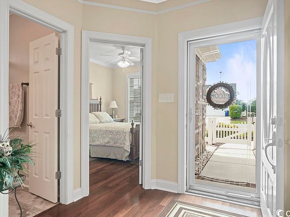 Welcome to one of the most desirable communities within Barefoot, walking distance to the Residents Clubhouse and a host of other amenities. This solid brick ranch was custom built in 2009. The layout is a split bedroom plan. It boasts of Bellawood flooring in the main areas and new LVP tile flooring in the kitchen, laundry and baths. The kitchen has solid wood cabinets and solid surface countertops, stainless steel appliances and even a wine fridge. There is a formal dining room off the foyer with a tray ceiling as well as a comfortable breakfast nook in the kitchen overlooking the wooded, beautifully landscaped rear yard. The great room features an additional sitting area that leads to the bonus room which has a new fan and a mini split for comfort. Both bathrooms feature walk in tiled showers, new sinks and flooring. One of which is shared by the two guest bedrooms and the other in the primary bedroom. New roof in 2018 and new HVAC in 2021. All windows are protected with hurricane film. Ask your agent for a complete list of upgrades. All this and a golf membership that can be transferred for a fee. Residents of Coquina Point enjoy a Residents Club with a pool, gym, library, activities room, full time activity director, pickleball courts, basketball, tennis and a playground. They also have access to a resort style pool located at the marina overlooking the intracoastal with a nearby restaurant, and a beach front cabana that is open year round. Barefoot Resort is home to four golf courses and is conveniently located near Barefoot Landing which features a multitude of shopping, dining and entertainment options. Don't hesitate to find your piece of the beach!