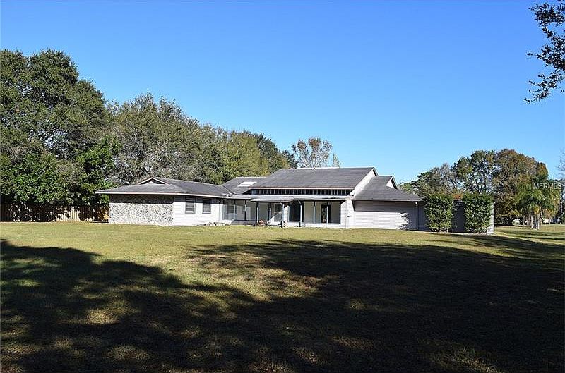 Priced to Sell - MUST SEE Custom built home situated on over 2.5 acres with enormous pool under roof! Formal Dining and large living room. This 4 oversized bedrooms each with their own full baths split design. Two of the bedrooms also have their own private enclosed patios with serene fountains. The homes focal point is the custom 43X13ft pool that is under roof in the center of the home. The pool overlooks the pond in the back of the property. Also additional workshop with RV enclosed parking. The workshop also has additional space possibly used as in-law suite. This area also welcomes your horses. No HOA. This home needs some TLC and your imagination. Call today!