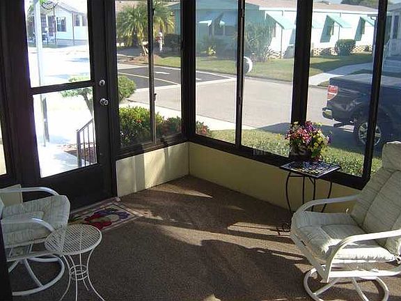 Turnkey furnished 2 bedroom, 2 bath, 2 car carport double wide in gated 55+ community. Features vaulted ceilings, inside utility room, breakfast bar, screened lanai & 8 X 8 storage shed in rear of carport. Close to the 15,000 sq. ft. clubhouse and community pool. The park offers a wide variety of amenities and activities including tennis courts, shuffleboard, pool tables, library, bingo and card games. 2 Pets totaling max weight of 45lbs are welcome! Seller to select & pay title.