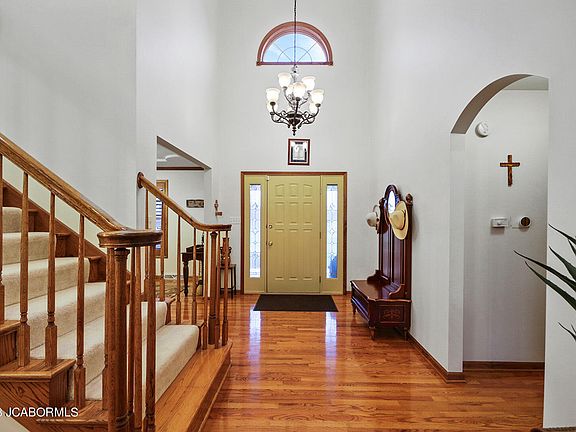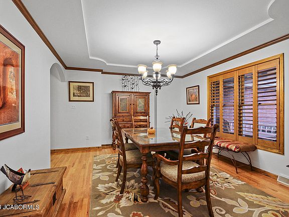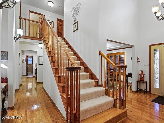 This stunning custom home in the Blair Oaks School District is sure to impress. The living room boasts a vaulted ceiling, open staircase, and a cozy fireplace. On the main level, you'll find a spacious master bedroom with walk-in closet & corner jetted tub. Upstairs, 3 bedrooms &1 bathroom provide ample space for your family & guests. The sunroom w/ separate heating & air conditioning offers a tranquil space to relax & enjoy the beautiful backyard featuring an inlaid brick patio, firepit, & fruit trees. The lower level family room comes equipped with a wet bar, full bath, & 6th bedroom (no window). 3 car garage atached & 4th garage has kitchen with stove & refrigerator. This home is a must see!