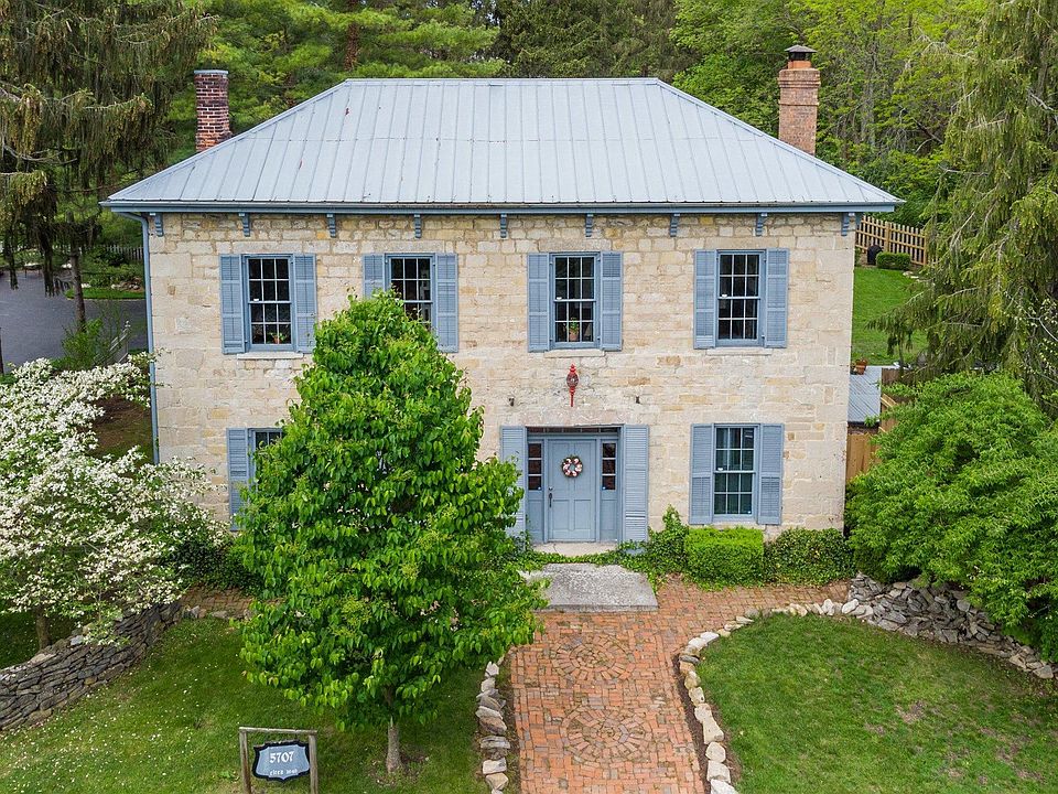 Own a piece of history! This home is a Historic James Davis House circa 1840, deeded by Thomas Jefferson & listed in the National Historic Registry. It sits on a private .75 acre, has a lush landscape, tall trees, featuring a beautiful stream. The original stone structure is intact with superior craftsmanship throughout the home. Restoration was done in 1980s that honored the period, plus added upgraded amenities. There are two wood burning fire places, classic crown molding, and high ceilings for spacious living. A must see kitchen with a perfect blend of the home's original design and modern appliances, wood beams, chef's walnut counter, antique cupboards, pantry, and much more. Located along a bike path just south of historic Dublin.