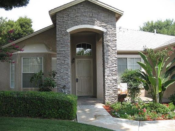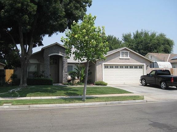 Home has great access to FWY 99 and HWY 180, Close to shopping, restaurants and GYM within 1.5 miles. Mature tree lined streets and nearby Fancher Creek Hiking trail. Granite counters in kitchen, gas range, tile floors in all but the 2nd and 3rd bedrooms which have Laminate floors. Off the entry way are double glass doors leading into what would be perfect office, workout room, or possible 4th bedroom without closet. Fireplace has matching Granite Hearth and Mantle and there is a breakfast bar. Down the hall is a skylight for good light, good sized master bedroom and bath with soaking tub and separate shower, walk-in closet and dual sinks in vanity. Beautiful landscape front and back with above ground spa sold as is, painted patio with gas valve in wall for Bar-B-Q, Quaint little sitting area with Fountain next to patio and large existing RV parking all down east side of home. Front porch is tiled with a small sitting area. Good portion of backyard has newer fencing.