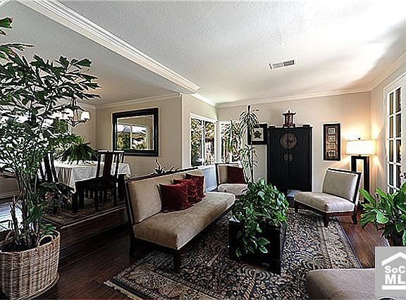 Gorgeous and luxurious Mabury Ranch family home. This home has been extensively remodeled and designed through out...a true dream for any buyer! Gourmet kitchen with extended granite counters, S/S appliances and maple finished craftman cabinetry. High quality wood and travertine flooring throughout. All newer dual paned energy efficient windows and sliding doors. Remodeled baths with newer granite counters, fixtures and cabinetry. Other extras include stylish wrought iron staircase, vaulted ceilings, crown moldings and raised baseboards. Beautifully landscaped grounds with rock hardscape front and rear. Private retreat patio complete with waterfall. New concrete tile roof, large three car garage and much more. Perfect home in the perfect community!