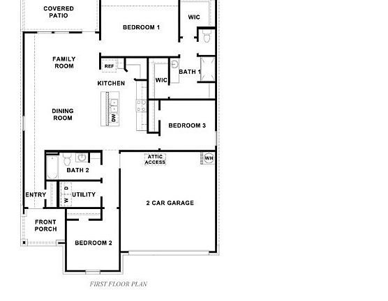 The Camden is a single-story, 3-bedrooms, 2-bathroom home featuring approximately 1,501 square feet of living space. The entry opens to two secondary bedrooms and bath with hallway linen closet. An open concept large combined dining and family area leads into the center kitchen. The kitchen includes a breakfast bar and separate pantry. The main bedroom, bedroom 1, features a sloped ceiling and attractive bathroom and spacious walk-in closet. The standard covered patio is located off the family room. Additional finishes include granite countertops and stainless-steel appliances. You’ll enjoy added security in your new D.R. Horton home with our Home is Connected features. Using one central hub that talks to all the devices in your home, you can control the lights, thermostat, and locks, all from your cellular device. With D.R. Horton's simple buying process and ten-year limited warranty, there's no reason to wait! (Prices, plans, dimensions, specifications, features, incentives, and availability are subject to change without notice obligation)