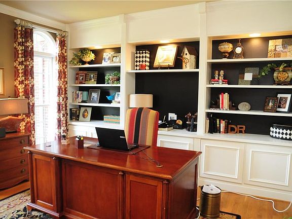 Shows like a model! 5 bedroom, 3.5 bath home with large, open kitchen w/ granite counter tops, tile backsplash, kitchen island, sunny breakfast area. Hardwoods w/ inlay throughout main level. Spacious bedrooms, plus bonus! Master suite w/ double vanities, 17 ft. walk-in closet, garden tub, sep. shower. Stately office w/ built-in bookshelves. Updated baths w/ granite, tile and travertine. Screened in porch, private backyard with mature trees, fully fenced, storage bld. Walk to pool or Bur Mil park!