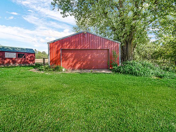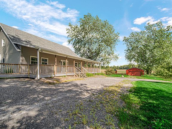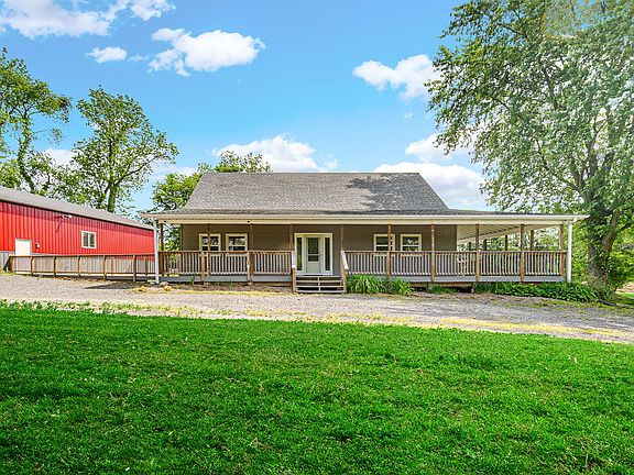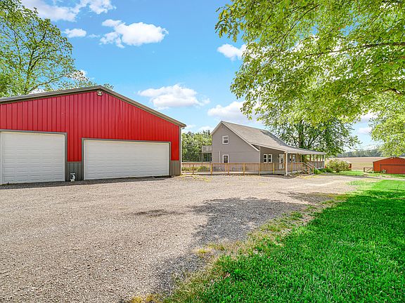 Spectacular 2 1/2 acre property featuring a recently remodeled 4 bedroom, 2 full bath home on full basement and 40'x50' heated outbuilding (new in 2018) with concrete floor, 10,0000 pound car lift and storage loft. Newer laminate flooring throughout main level of home and brand new carpet in 3 bedrooms. Quartz countertop in kitchen. Bathrooms beautifully remodeled! Family room with stone surround fireplace. Full basement provides tons of storage. Roof/siding replaced and deck/central air added about 10 years ago. Four inch well, septic pumped in 2023. Additional 2-car detached garage and chicken coop. Outdoor playground stays. Magnificent wrap around covered porch! Move in ready!