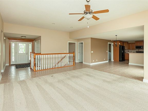 This home is a very open floor plan with over 2600 finished sq. ft. Eat-in kitchen with maple cabinets with sylists tile design back splash, slider to deck. Lots of tile flooring, maple hardwood floors, formal dining room. 10' ceilings in the Great room with gas fireplace. Large master bedroom with master bath, double vanity, Jacuzzi tub and walk-in closet. Lower level finished with 2 additional bedrooms, full bath and family room. This home sets on 1/2 acre irrigated lot. Plumbed for central vac. 3 car garage & shed. Home located in Woodside Estates West. Pride of ownership in this one owner home!