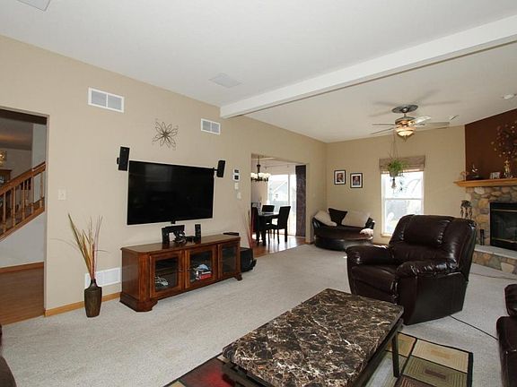 Spacious Colonial with Great room with 9 ft ceilings, REMODELED kitchen, natural fireplace, and so many more UPDATES! granite counter, backsplash and new flooring. Built in surround sound. 6 panel doors throughout and custom blinds! UPDATED BATHROOM with vessel sink, whirlpool tub in Master Suite. 50 gallon water heater, central vac and electric dog fence installed. 3 CAR GARAGE! GREAT REC ROOM IN THE LOWER LEVEL WITH BAR! ACT FAST!