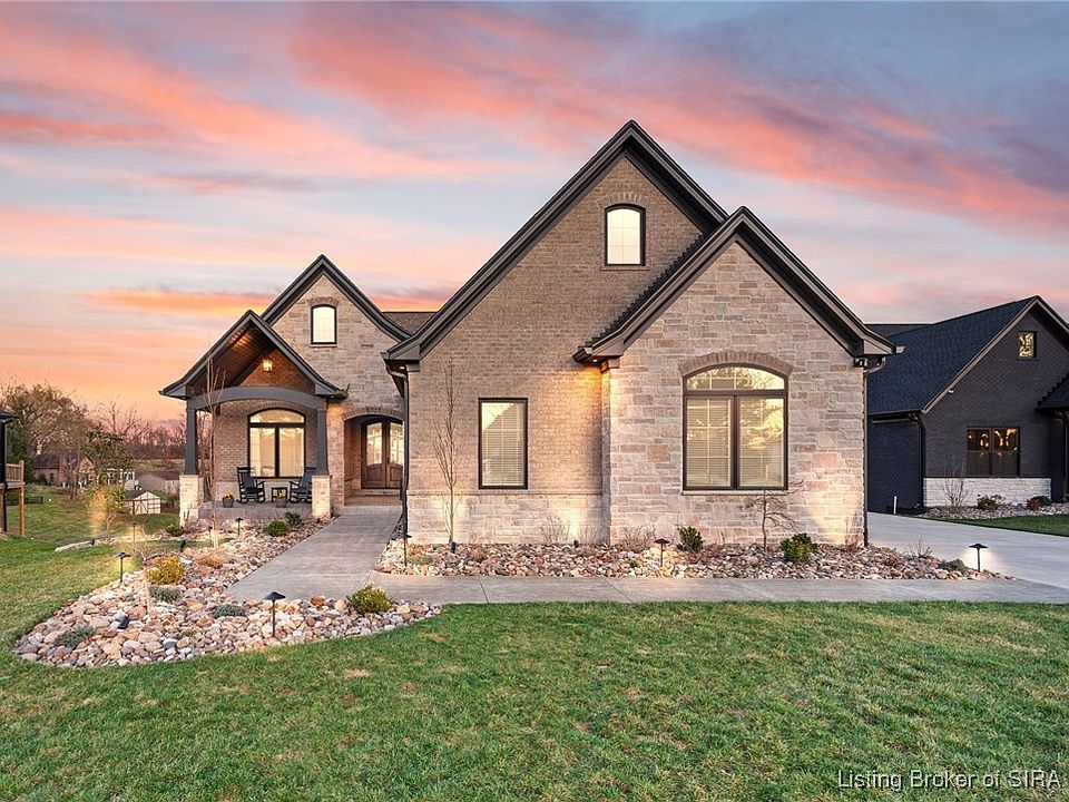 Experience modern elegance in The Stables at Old Stoner, one of Southern Indiana’s premier communities. Built just one year ago by Millennium Builders, this 4-bedroom, 3-bath Modern Tudor home combines thoughtful design with high-end upgrades.