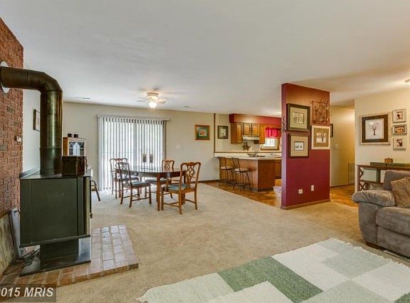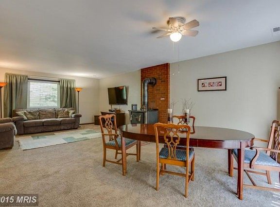 THIS HOME HAS NO BASEMENT.Beautiful 1.22 acre tree lined lot with 3 bedrooms & 2 renovated bathrooms. New Windows,spacious room sizes, Master Bedroom with full bath, walk in closet. Open floor plan, living room, and dining room combo with a wood burning stove. Relax on the patio that hosts a brick barbecue pit. Shed with electric, plenty of parking, recent roof, HVAC. Close to Piney Run Park.
