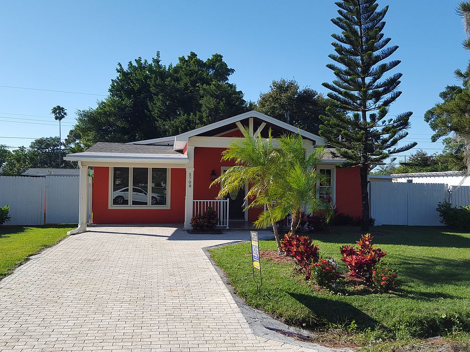 Adorable "Key West" Inspired 3 bedroom-2 bath Home located in West Bradenton. Beautifully renovated & ready for its new owners! Light & Bright ,open floor plan showcases designer touches. Modern staggered tile throughout the home and real wood flooring in the bedrooms. The Chef of the house will love the Gourmet Eat-In kitchen with 10' ceilings, Granite counter tops, Huge center island, White wood cabinets, Glass top stove with decorative range hood, KitchenAid refrigerator, New oven, Wine rack & Whirlpool dishwasher. A generous size master bedroom with walk-in closet. The master bathroom has a seamless glass walk-in shower with high quality tile creating a spa like atmosphere. The split floor plan hosts two comfortable bedrooms sharing the guest bathroom. French Doors open to a Large privacy fenced back yard with a relaxing deck, firepit, storage shed. & beautiful shade trees. Room for boat storage. Upgrades galore. Roof, AC & Windows have been replaced. Plenty of parking on the paved drive way. NO HOA fees or DEED RESTRICTIONS. Great for income property too. Close to shopping, schools, beaches, & airport.