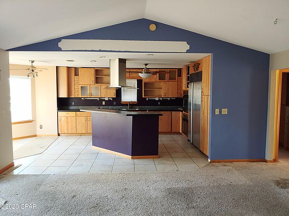 - Interior: Floor Tile, Floor WW Carpet, Ceiling Cathedral, Kitchen Island, Needs Work, Fireplace 2+