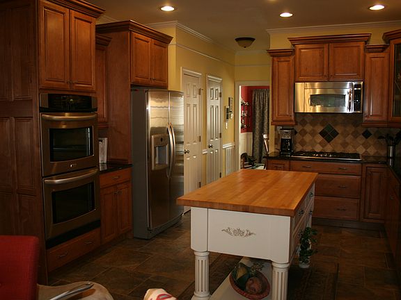 5 BR /4.5 BA, 3-side brick, totally updated home. Hardwoods, 9 ft ceilings and crown moulding throughout main level. Main level includes Family Room W /gas log fireplace, totally renovated Kitchen w/butcher block island, slate floor, granite tops, stainless appliances, dbl convection oven, gas cook-top, eat-in area w/bay window. Master suite w/ remodeled bath featuring his & hers vanities w/granite tops & sitting area, whirlpool garden tub, 2 walk-in closets, separate shower & tile floor. Main level also has Dining Room, Sunroom, Laundry & Half Bath. Upstairs includes 3BR's & 2 BA's w/ tile floors. Finished Basement includes Den w/carpet & built-in TV cabinet, Kitchenette w/tile floor, cabinets & dish washer, also additional BR & BA. Outside includes screened porch w/ceiling fan, Deck, flat back yard w/privacy fence, Sprinkler System, 18'x 40' in-ground pool, Brick Poolhouse w/ utility sink, toilet, cabinets & plenty of storage space. Home also features dual- pane drop-in easy clean windows and Dual HVAC w/ heat pump & gas piggyback. Basement also includes 2-car garage. New roof on house and poolhouse in 2014.