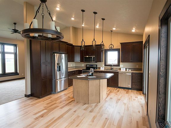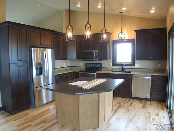 Another Quality Multilevel Walkout home built by Ronning Custom Homes in East Sioux Falls. Beautiful Open floor plan with Vaulted CEILINGS inc 3 beds, 2 1/2 baths, Living Room Fireplace with bookcases, family room with fireplace, Beautiful Cherry cabinetry Mocha stain & Maple with Oregano stain/Chocolate Glaze from StarMark includes an ISLAND and pantry. 3 Panel flat poplar doors, Wide casing. 3/4 inch hardwood floors in the kitchen, dining, entry & Luxury Vinyl Tile are inc in the baths & Laundry. 2 lavs, 36" WIDE tub/shower in Master bath. The appliance package inc. side by side frig, stove, d/w, microhood all in S/S. Rock, edging, sprinkler, sod, garage door openers are included. Large 14x14 CVD DECK off of the dining room with stairs to 14 x 14 Patio off of walkout family room & ANDERSEN windows finish this home off perfectly! Come see for yourself why we are the builder of choice and let us help you plan your new home! Taxes will be lot taxes ONLY until home is assessed by count
