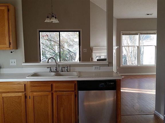 Charming Ranch in Harrington Grove with Open Floor Plan. 3 bedrooms, 2 baths. Large Family Room w/ cathedral ceiling & corner fireplace. Sep. Dining area. Spacious kitchen featuring Oak cabinets, stainless steel appliances & bay window. Hardwoods/laminate in Kitchen, Entry, Hall & Family Room. Master bedroom offers a walk in closet. Master bath has dual sink and private toilet. New carpet, new wall paint. New flooring in Master Bath & Full Bat. Fenced in Yard, Shed, Corner/Cul-de-sac.