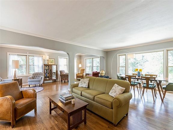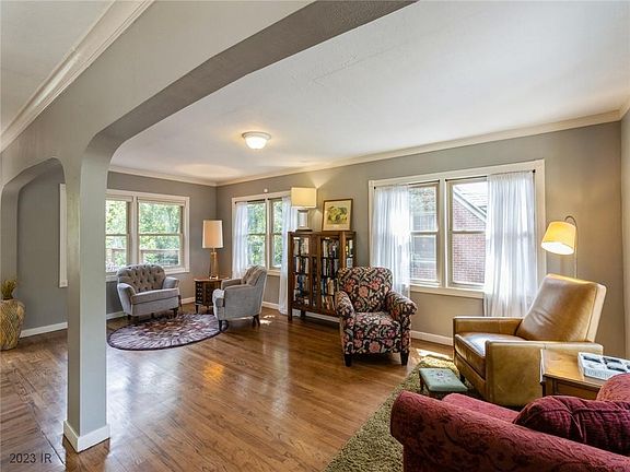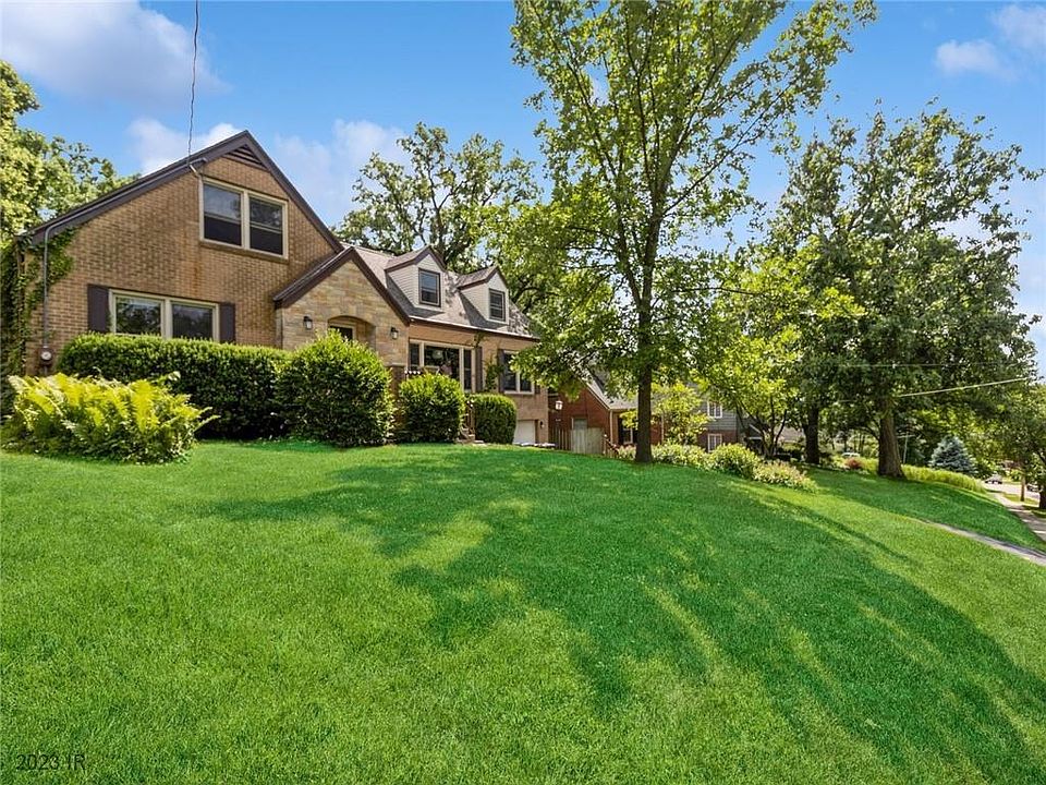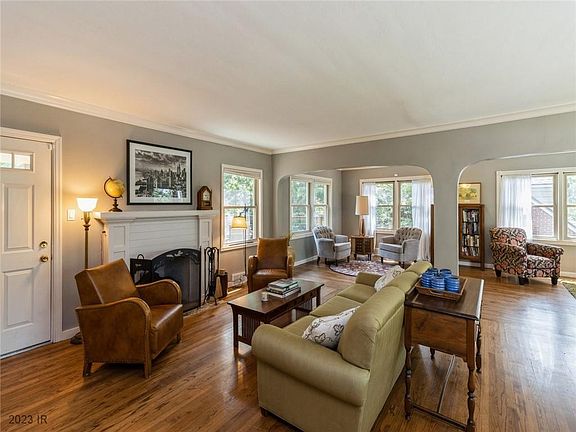 Wonderful Family home located in the Waterbury Neighborhood. Spacious and light fills this Brick home. There are gleaming hardwood floors throughout. The open living room/Sunroom has a fireplace and great new windows with views of the backyard. The large open kitchen has newer appliances and a charming St Charles cabinetry with an eating area. There are two bedrooms on the main floor and an original tiled bathroom with a large soaking tub/shower. Upstairs are two more bedrooms. The primary bedroom has an adjoining sitting/dressing room area. The bedroom area has newer carpeting. The en suite bathroom has been renovated and includes a nice shower, separate toilet room & vanity area. One of the bedrooms is currently being used as a large office. An adjoining room is being used as another sitting room. The 2nd floor has lots of attic storage areas in each room. The LL has a laundry room, kitchen area and a large rec room with a fireplace. The entire basement has vintage vinyl flooring. There is even a shuffle court embedded in the vinyl! The level back yard currently has a garden in the center but could be turned back into a grass area. A spacious Deck with a partially covered area overlooks the yard. Close to area trails, shopping, churches and I 235 access.
