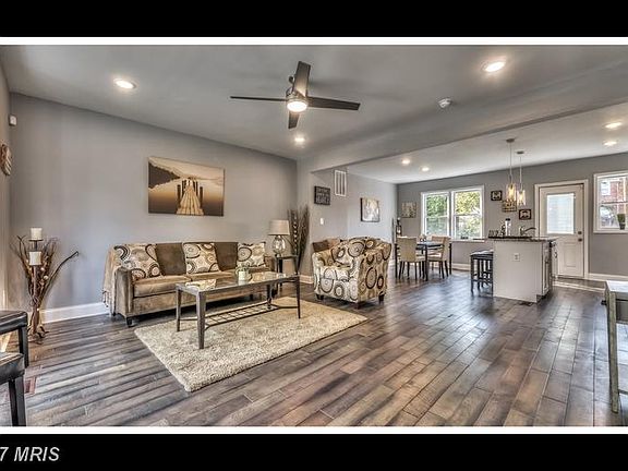 Lovely rowhome in great stable community. Completely rehabbed and ready for enjoyment inside and out.3bdr, 2 fba, open floor plan with beautiful wood floors throughout, Granite counters, stainless steel appliances, bay window, beautiful front porch and large level yard. Carpeted finished basement with family room,4th bedroom and full bath.