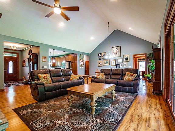 Welcome to 5708 MacKenzie! This 6 yr "young" brick Ranch with over 5,000 sq. ft. is amazing! Enter into the foyer that leads to a spacious open great room with floor to ceiling brick fireplace, vaulted ceiling, and built-in wood bookshelves. The kitchen size and layout is outstanding with granite counter tops plenty of cabinets and drawers. A 5 star stove and oven is a chefs delight. The master bedroom has a vaulted ceiling, two walk-in closets. There is a raised double sink vanity and a large walk-in shower. At the other side of the house, there are two bedrooms and a main bath. This is an unbelievable lower level with an outstanding theater room, a fireplace, a separate game room. There is a wet bar with a light up onyx counter top. The two bedrooms and huge full bath could be a teen suite or for out of town guests. Plenty of egress windows. Don't forget to see the workshop area. The second floor has a bonus room with knotty pine paneling, a sky light and a full bath. Relax on the spacious covered back porch overlooking the 2 acre wooded lot and a fenced in area. There is a FOUR car garage. One bay has a door opening to the backyard. This home offers a little bit of country and city living.