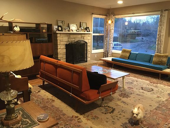 Charming mid-century home with an open kitchen, large gas range, dishwasher, and built in microwave. There is a stacked washer and dryer conveniently located in the kitchen. Spacious living room with fireplace. Full bathroom with double sinks. Plenty of storage space in the garage! We just added insulation for utility efficiency. We can provide a video tour upon request. This is the upper unit of a house; there is a single long term tenant in the basement apartment. Modest quiet hours in the lease from 10:30pm to 9 am. Owner pays trash. This unit gets the whole fenced back yard and patio. Lease will require quiet hours from 10pm to 9 am.